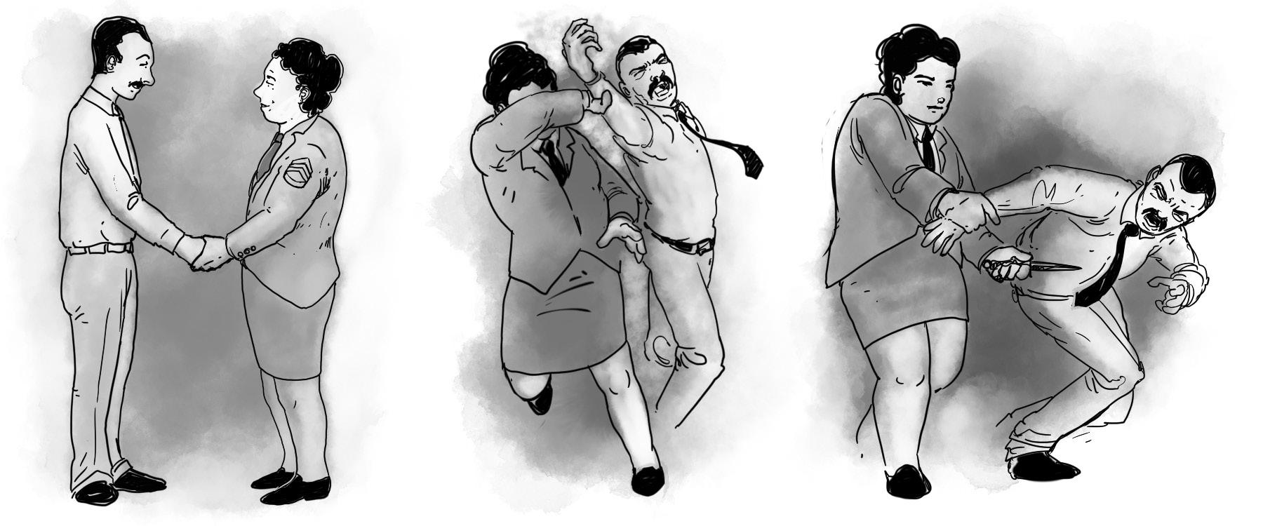 I Get Stabby. Use Stealth instead of Fight when using a concealed knife. This can only be used on the first attack.