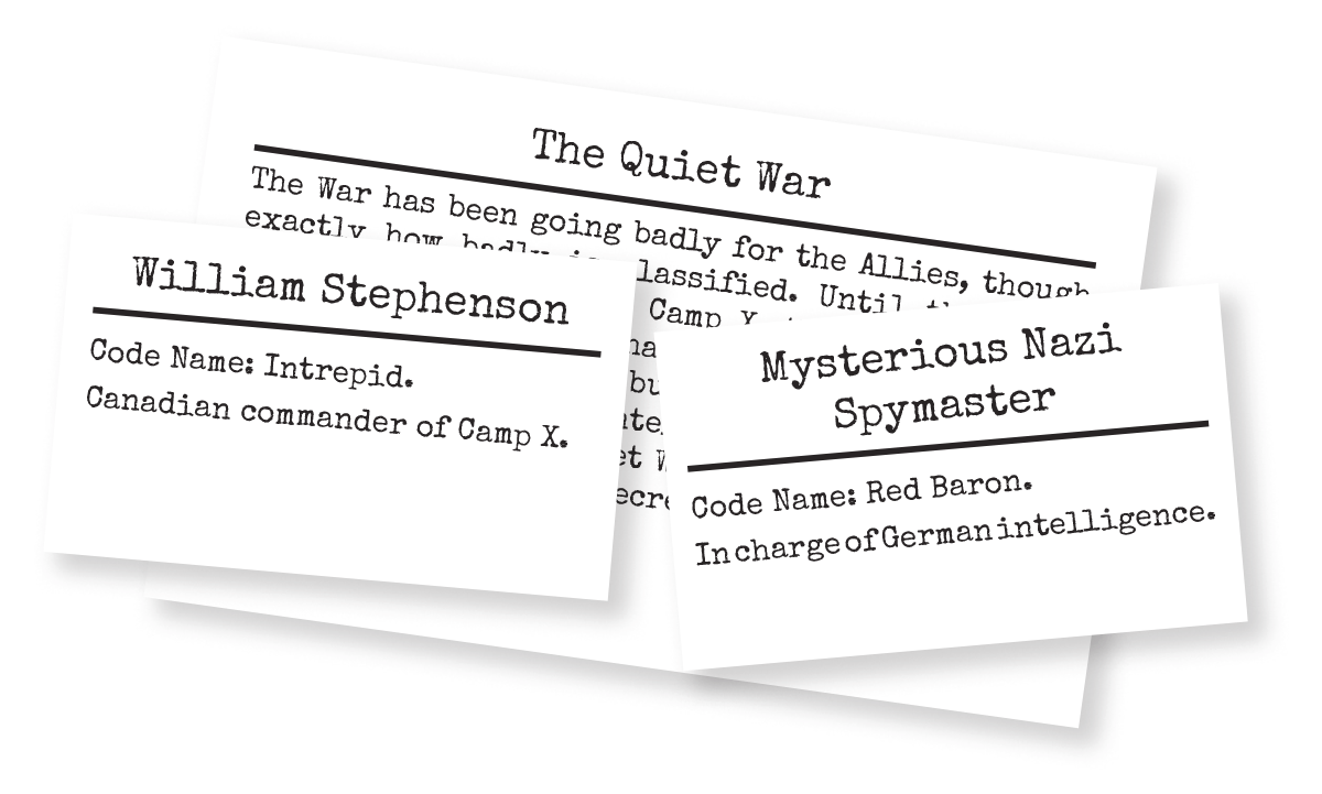 Everyone is supposed to work together in times of war—but in reality, political agendas aren’t so easily forgotten. Camp X is a Canadian installation, but as chief of British Security Coordination as well as commander of the camp, Stephenson is beholden to the Crown. Meanwhile, the United States is gaining greater influence in the war due to resources and at the camp due to proximity. The war-weariness and caution of the Brits must be balanced with the impatience and determination of the Americans in every operation, and agents will negotiate the same politics in their own cells. Agents’ “home” organizations will have “friendly” requests that suit their own agendas, and how operatives respond will affect their relationships with superiors.