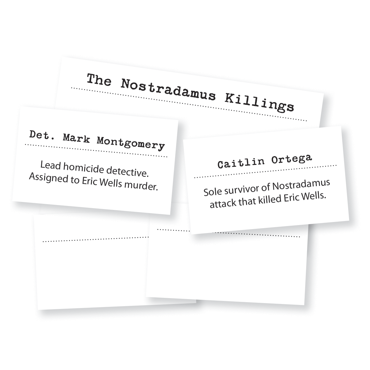 Unlike the detectives of a more traditional police procedural, the characters in Nostradamus are not police officers assigned to a particular case (see Impending Issues later in this section for more on Mark Montgomery, the homicide detective assigned to the Nostradamus case). Instead they are curious onlookers who become embroiled in the case even as people tell them to mind their own business and let the police do their job.