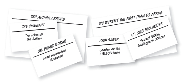 Then ask your players to choose from one of two available impending issues: The Aether Arrives or We Weren’t the First Team to Arrive. Have them fill in one or two additional faces for their chosen impending issue as well, rounding out the larger cast of characters with their suggestions.
