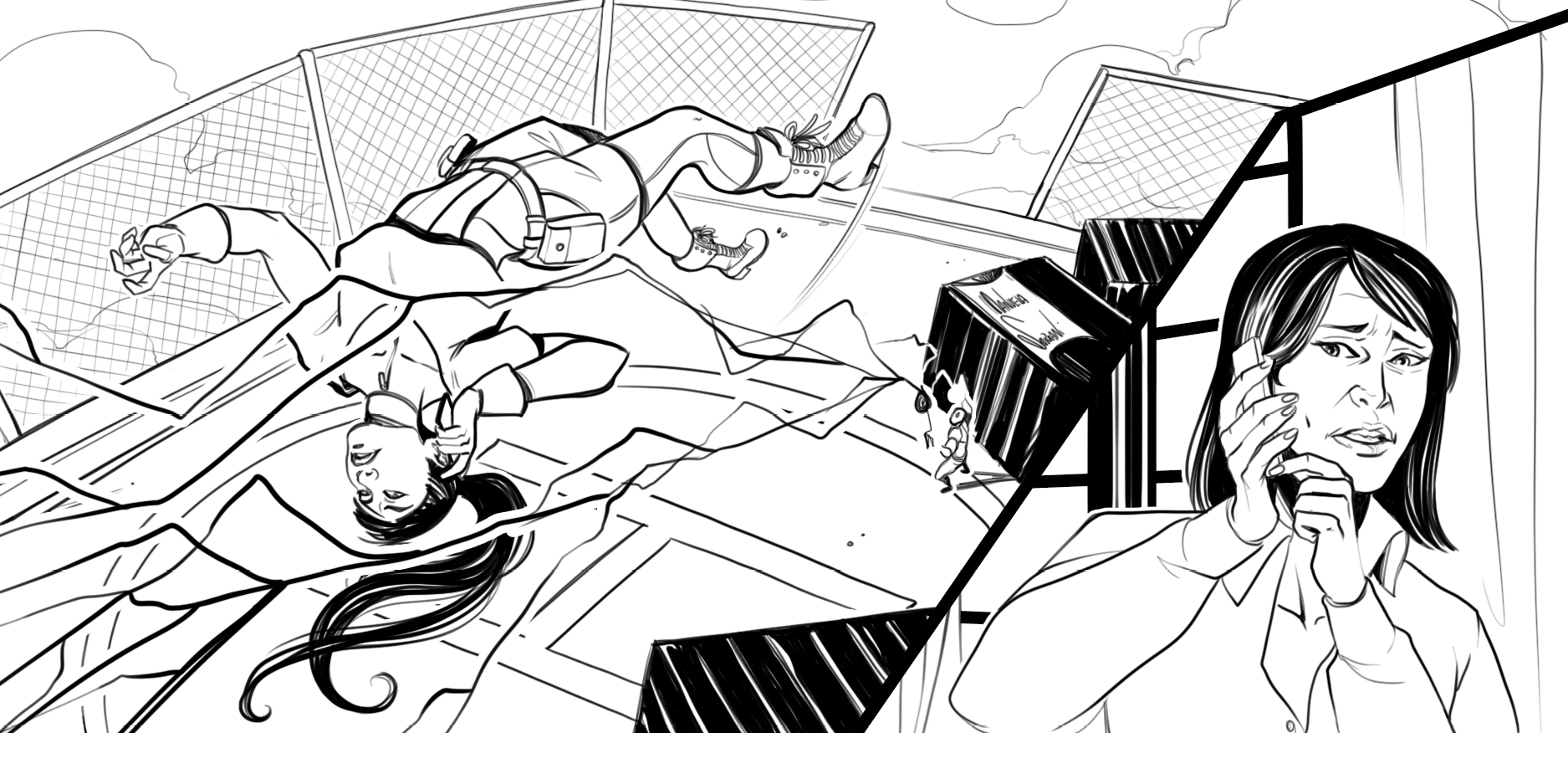 Spider-Man has gotten into a fight with the nefarious Enforcers. To escape them, he has to win a contest. However, he ends up failing a crucial roll and runs out of webbing to swing with. He checks off his Losing Aunt May’s Trust condition and ends up embroiled in the fight. Because he spends so much time in this brawl, he gets home very late. Aunt May is left to worry.